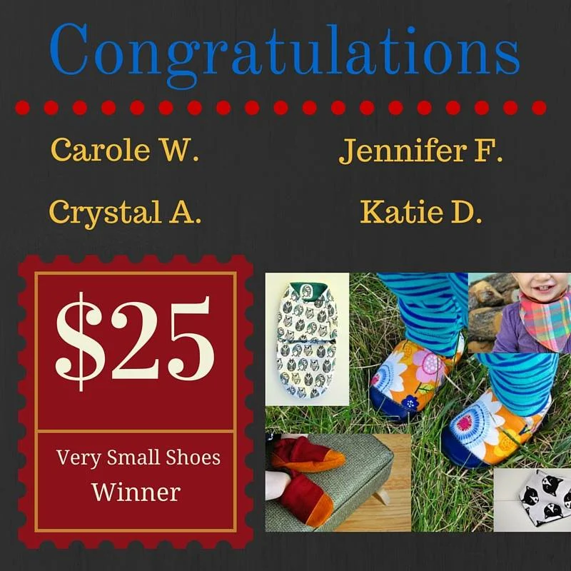 Giving away items in a giveaway has somehow made my business feel more established. I'm fancy now. Real fancy. Congrats to all the babies who will be soon getting goodies!